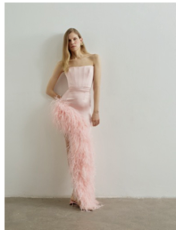 All of the feathers are 100% ostrich feathers. They are produced with full commitment to the framework of sustainable production and are supplied from certified farms. Store in a cool and dry environment. Since the feathers are not synthetic, it is expected that some amount of shedding will occur. All of the feathers are hand stitched to the dress. Before handing over the dress for dry cleaning, the feathers should be removed and sewn again after the dress has been cleaned.
