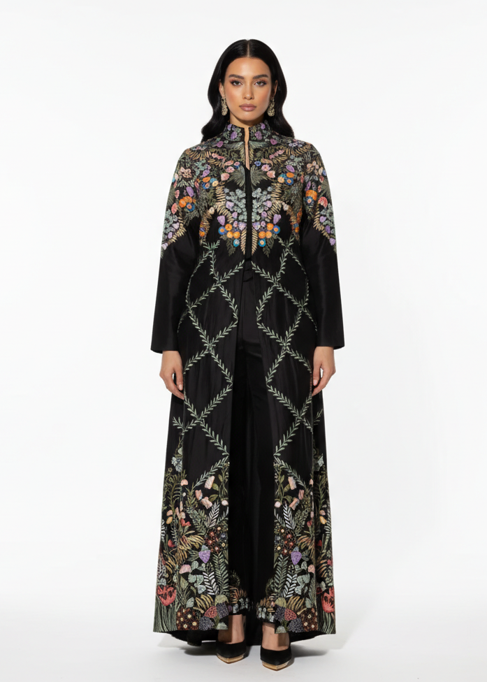 Embroidered long jacket with slim embroidered pants